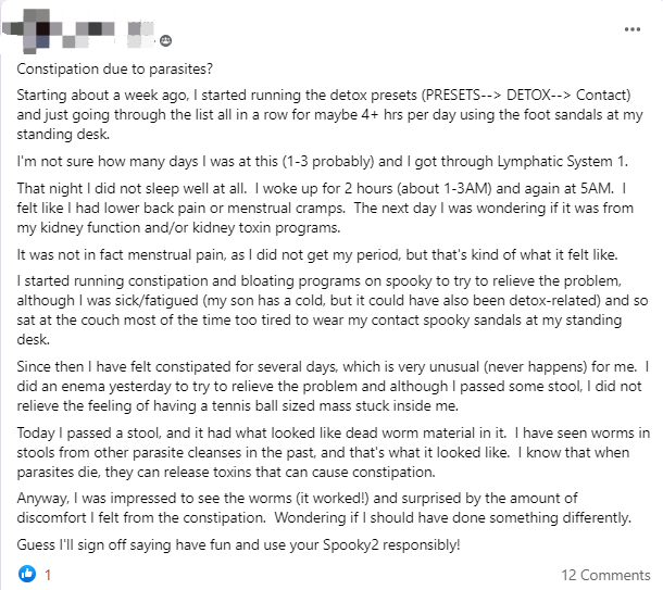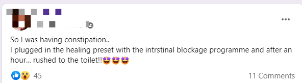 Ich habe das Heilungs-Preset mit dem Programm für innere Blockaden eingesteckt und bin nach einer Stunde … auf die Toilette geeilt!!”