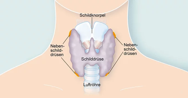 Die Schilddrüse liegt im Halsbereich unterhalb des Kehlkopfs. Sie bildet Hormone, die den Stoffwechsel, das Wachstum und die geistige Entwicklung steuern. Aus den Zellen der Schilddrüse können sich verschiedene Arten von Krebs entwickeln.