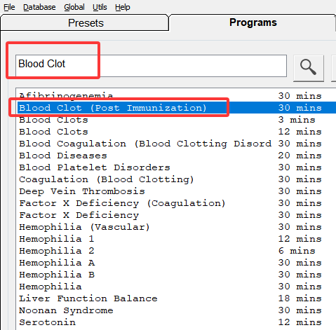 2.Passendes Preset auswählen: Im Spooky2-Softwaremenü unter “Shell (Empty) Presets > Remote > Healing (R) – JW” eine passende Voreinstellung auswählen.