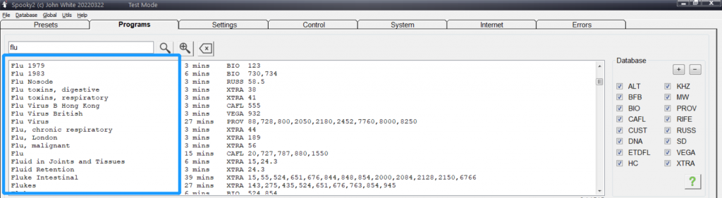 Stellen Sie sich vor, wenn die Spooky2-Software nur ein Programm für jede Bedingung bereitstellt, dann wird es für Sie viel einfacher sein, das Programm zu laden und auf Ihrem Generator auszuführen. Bei über 30.000 Programmen in der Datenbank kann es für Spooky2-Neulinge jedoch ein schwieriger Schritt sein, ein geeignetes Programm für ihre Anforderungen auszuwählen.