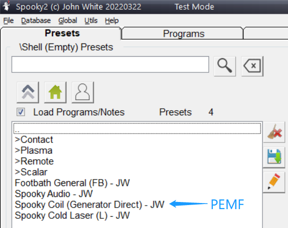 Spooky2 hat zahlreiche Produkte, alle mit unterschiedlichen Übertragungsmodi und Zubehör. Wenn Sie bei dem ersten Kauf ein Spooky2-Kit kaufen, haben Sie möglicherweise die Wahl zwischen Kontakt, Fernbedienung, Plasma, PEMF und Kaltlaser. Alle Programme sind mit diesen Übertragungsarten kompatibel. Sie müssen jedoch sicherstellen, dass Sie auf der Registerkarte Presets (Voreinstellungen) die richtige Voreinstellung auswählen.
