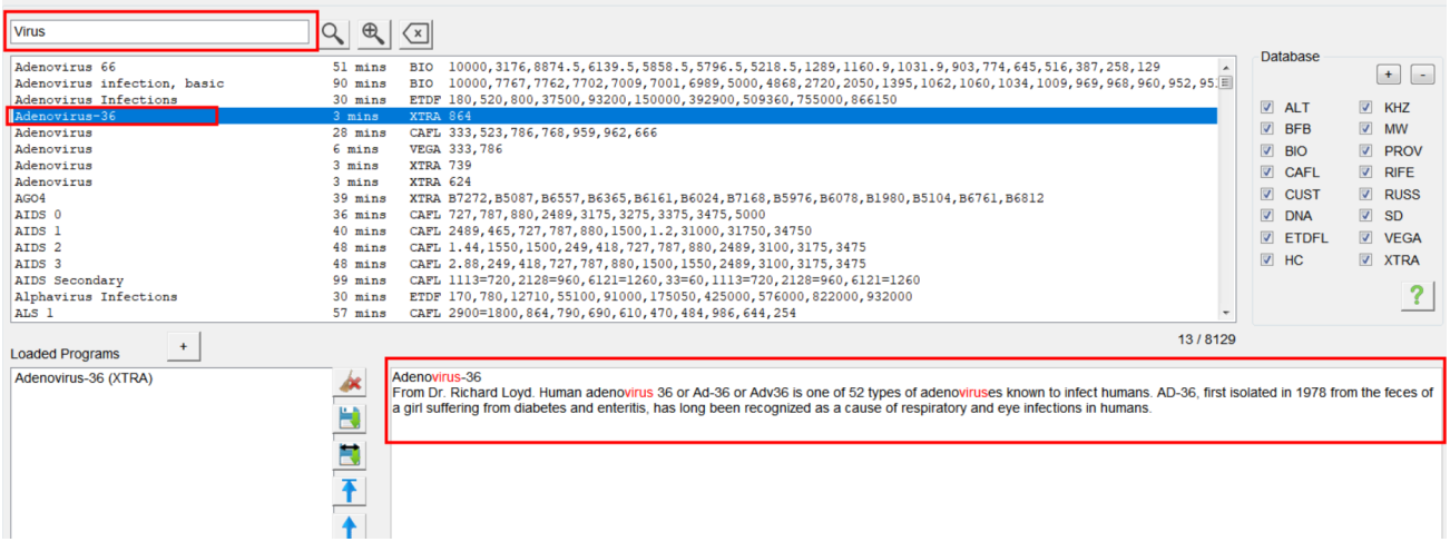 Wenn Ihre Symptome nicht zu einer der oben genannten Kategorien gehören und Sie sich immer unsicher fühlen, wenn es darum geht, Entscheidungen zu treffen, bieten die Programmhinweise weitere Informationen für Benutzer, die Sie als Referenz verwenden können. Wenn Sie „Virus“ oder „Parasiten“ in Verbindung mit den Programmen, der Suchbox oder den Programmhinweisen finden, können Sie Tötungs-Voreinstellungen wählen.