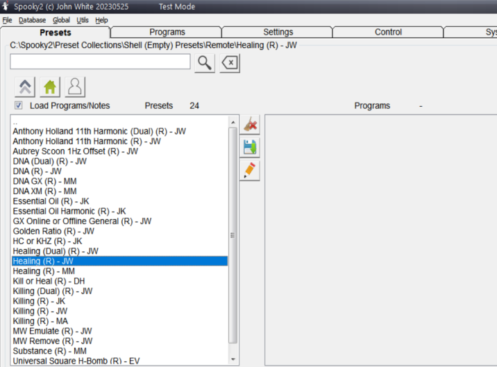 Gehen Sie zur Registerkarte “Presets” und klicken Sie auf > Shell (Empty) Presets > Remote > Healing (R) – JW.