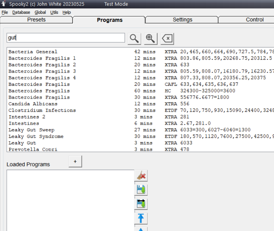 Gehen Sie dann auf die Registerkarte „Programs“, suchen Sie nach „Gut“ und wählen Sie anhand der Beschreibung das Programm aus, das Ihren Symptomen entspricht.