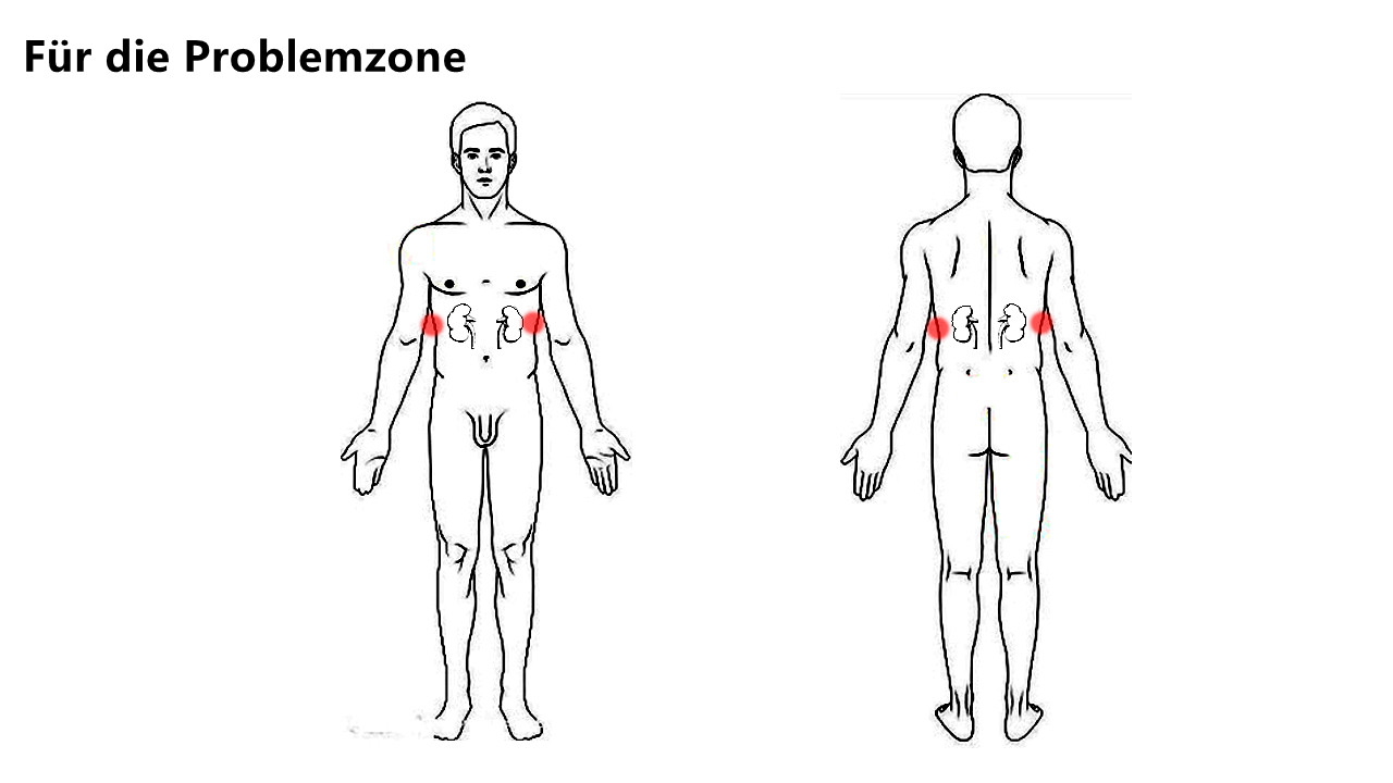 Hallo Norbert, Wir empfehlen Ihnen, dass Sie die Pads auf der linken und rechten Seite des Rumpfes, in der Mitte zwischen den Hüften und den Schultern legen:)