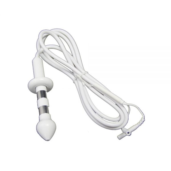 Diese spezielle Sonde hat einen einzigartigen rechtwinkligen Abschnitt, der seitlichen Bewegungen widersteht, und einen äußeren Kragen für ein präzises Festhalten. Die sanft geschwungene Form und der schmale Hals unterstützen das Einführen und den Tragekomfort. Die konturierten Elektroden ermöglichen eine angenehme Frequenzapplikation. Die Zweifachelektroden erlauben dem Anwender entweder den Analkanal oder lokalisierte Organe zu behandeln.