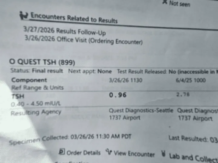 Vor Kurzem hatte ich nun den besten TSH-Wert seit 20 Jahren. Als Nächstes werde ich noch umfassendere Schilddrüsenwerte testen lassen und meine Medikation entsprechend anpassen. Ich bin wirklich überglücklich!