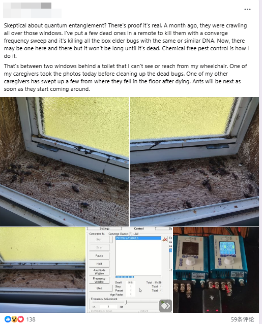 Sie sind skeptisch gegenüber Quantenverschränkung? Es gibt Beweise dafür, dass sie real ist. Vor einem Monat krabbelten sie überall an den remote herum. Ich habe ein paar tote Exemplare in eine Fernbedienung gelegt, um sie mit einem konvergierenden Frequenzdurchlauf zu töten, und das tötet alle Boxelder-Käfer mit derselben oder einer ähnlichen DNA. Jetzt gibt es vielleicht noch hier und da einen, aber es wird nicht lange dauern, bis sie alle tot sind. Ich setze auf chemiefreie Schädlingsbekämpfung.