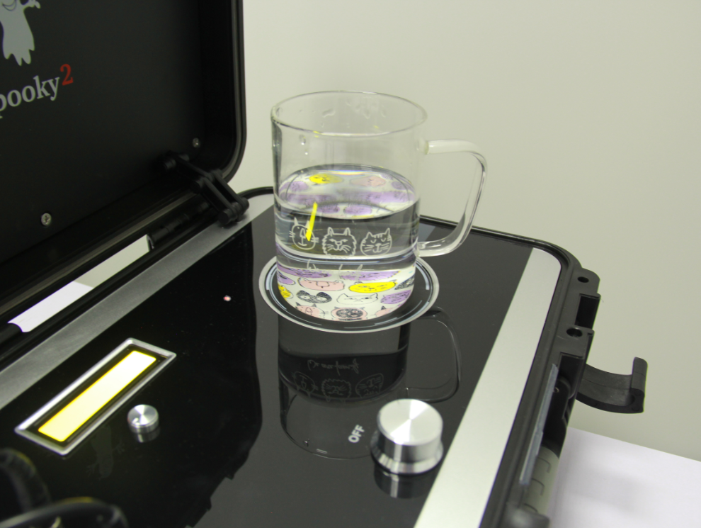 Stellen Sie das Wasser auf die Senderplatte und schalten Sie Ihren Spooky2 Scalar ein.