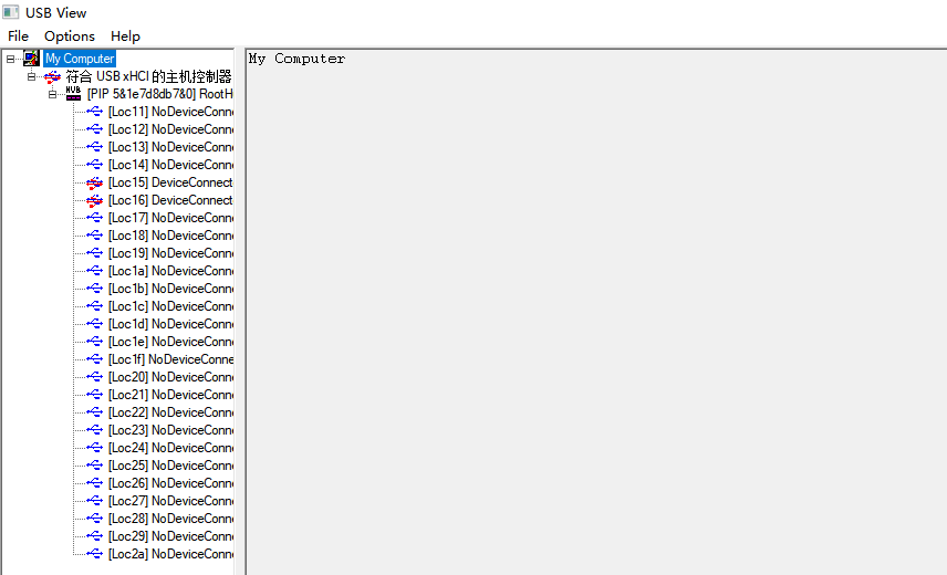 2.Identify USB Devices (USB-Geräte identifizieren) öffnet die USB-Ansicht. Hier können Sie sehen, welche USB-Geräte angeschlossen sind.