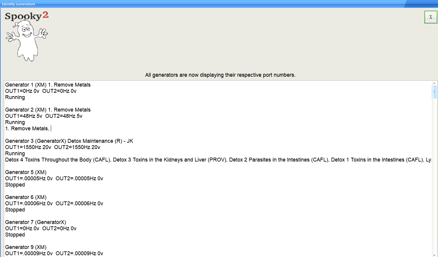 4.Remove Unused Generators from Registry (Nicht verwendete Generatoren aus der Registrierung entfernen): Wenn Sie viele Generatoren an einem Computer verwenden, kann durch Umstecken oder Ein-/Ausschalten der Generatoren ein kleines Chaos entstehen. Mit diesem Dienstprogramm werden nicht mehr benutzte USB-Ports entfernt und die zugehörigen Portnummern wieder freigegeben. Es kann aber stattdessen auch sinnvoll sein, das Spooky2-Programm zu beenden und neu zu starten.